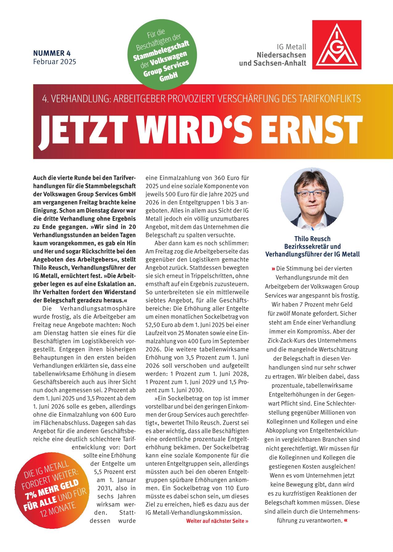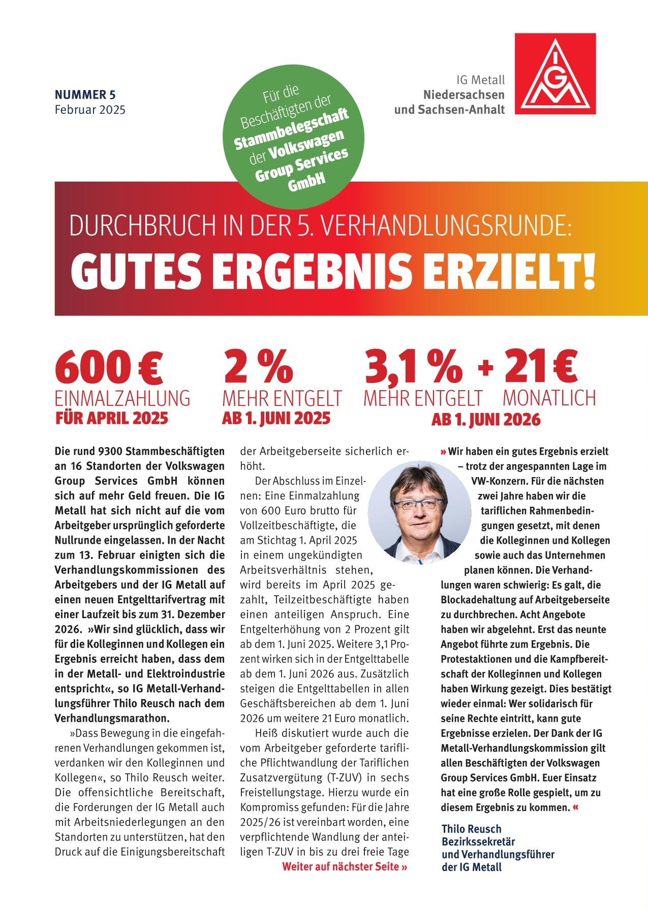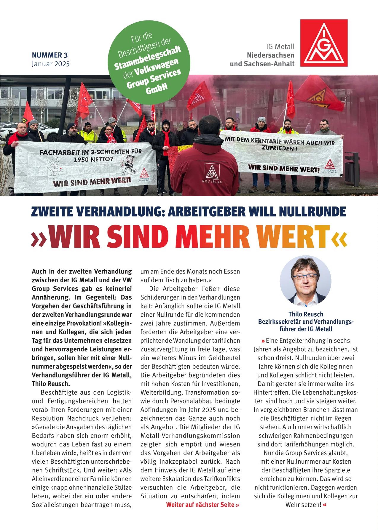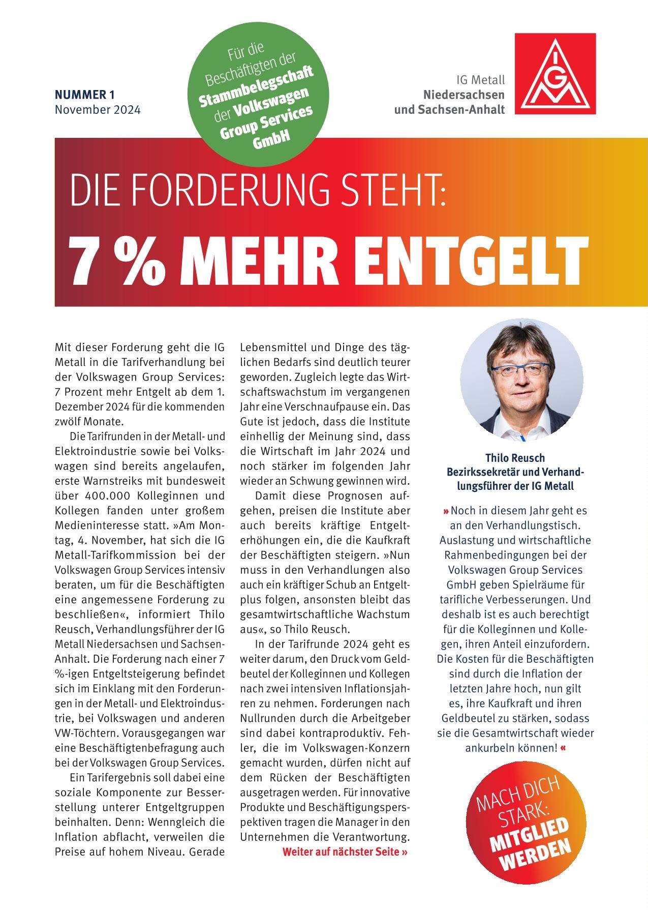 Informationen über die Tarifrunde der Volkswagen Group Services