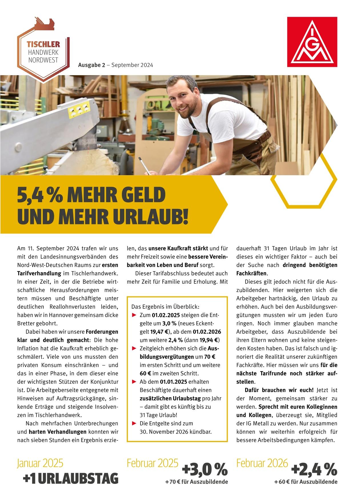 IG Metall Tischler Tarifergebnis Flugblatt - September 2024