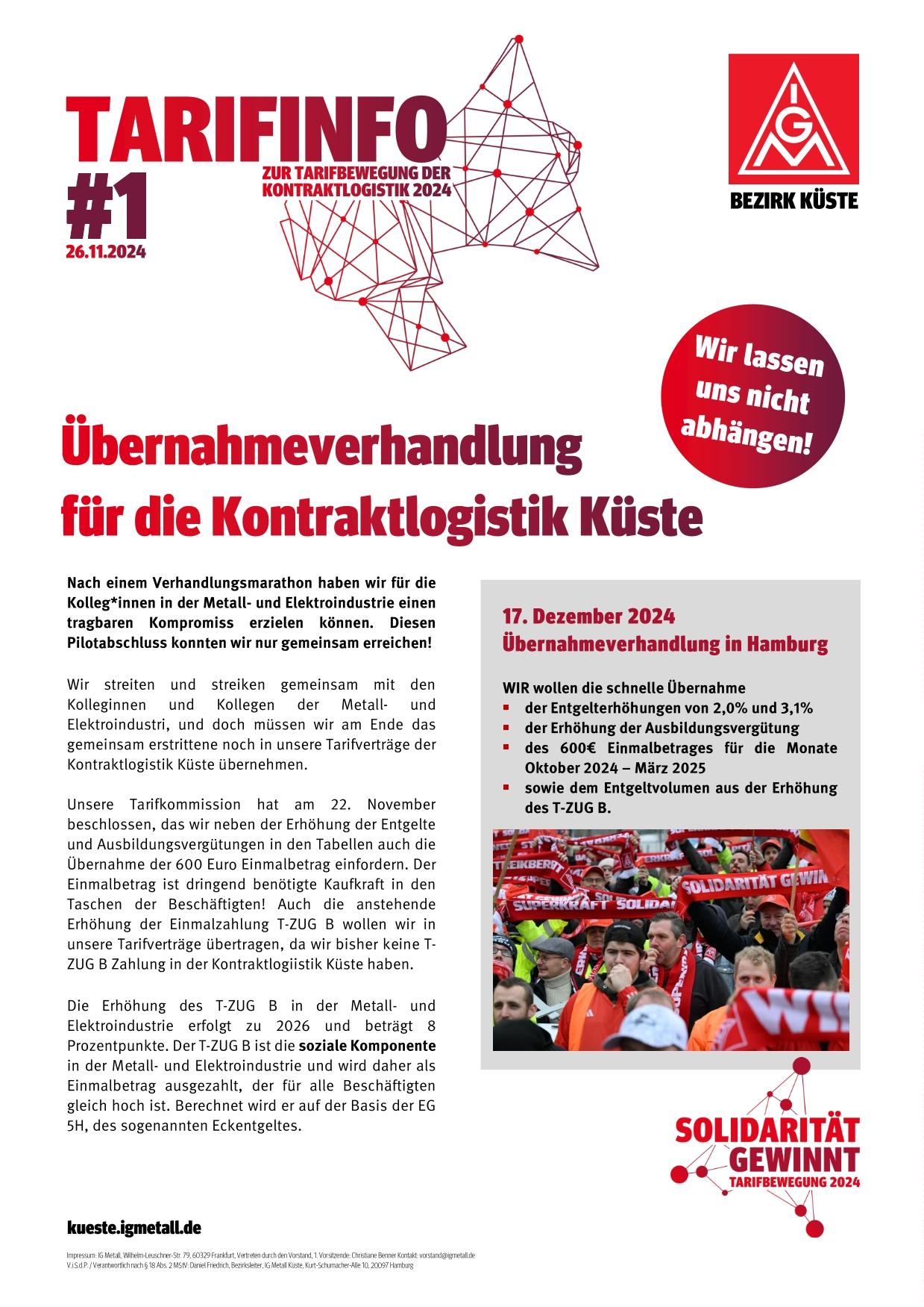 Tarifinfo Kontraktlogistik Küste Nr. 1 16.11.2024