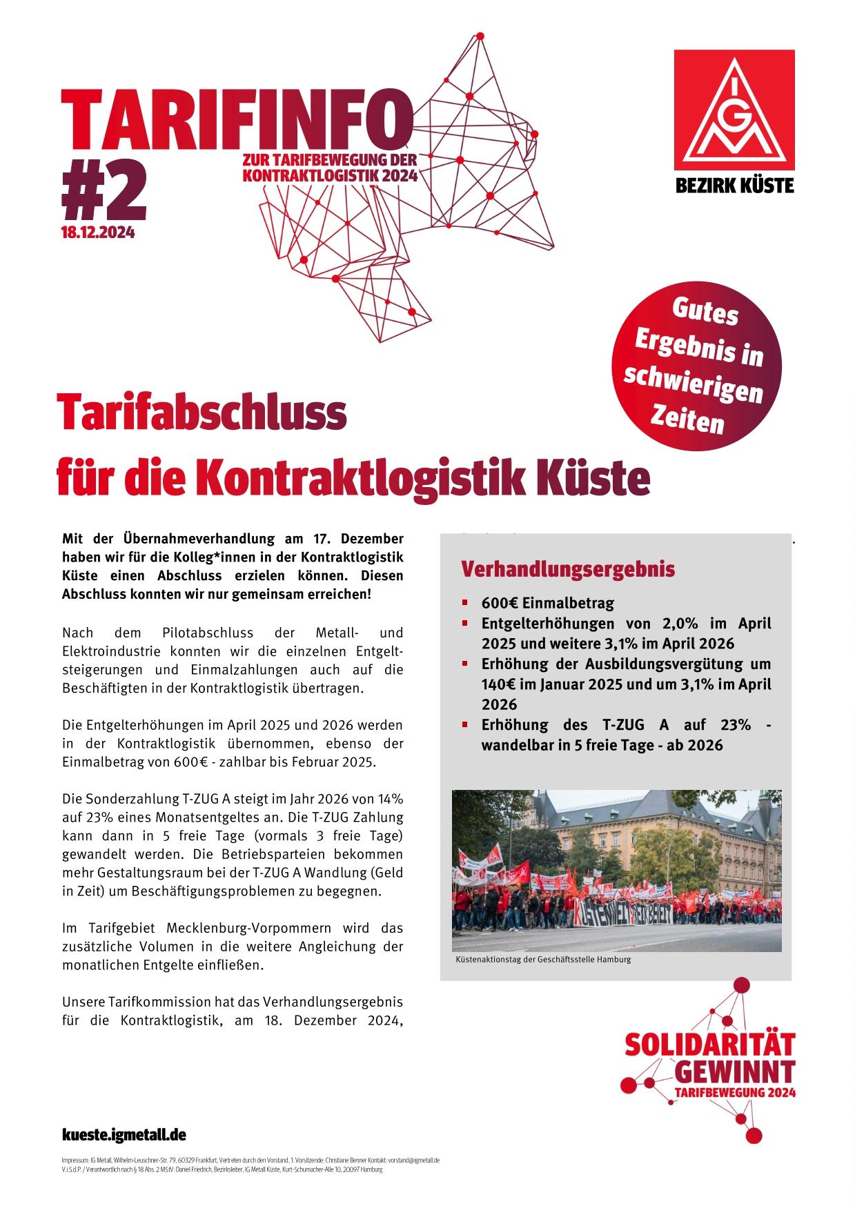 Tarifinfo Kontraktlogistik Küste Nr. 2 18.12.2024