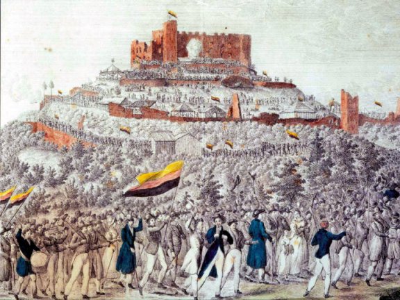 Beeinflusst von der französischen Revolution von 1789 („Freiheit, Gleichheit, Brüderlichkeit!“) entwickelte sich auch im deutschen Sprachraum eine mutige Bewegung für die Überwindung der reaktionären feudalistischen Kleinstaaterei durch eine demokratische Republik.